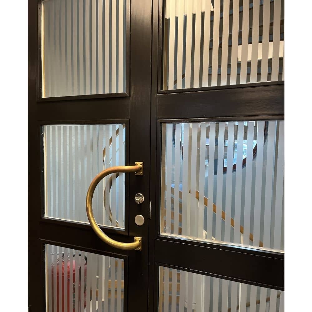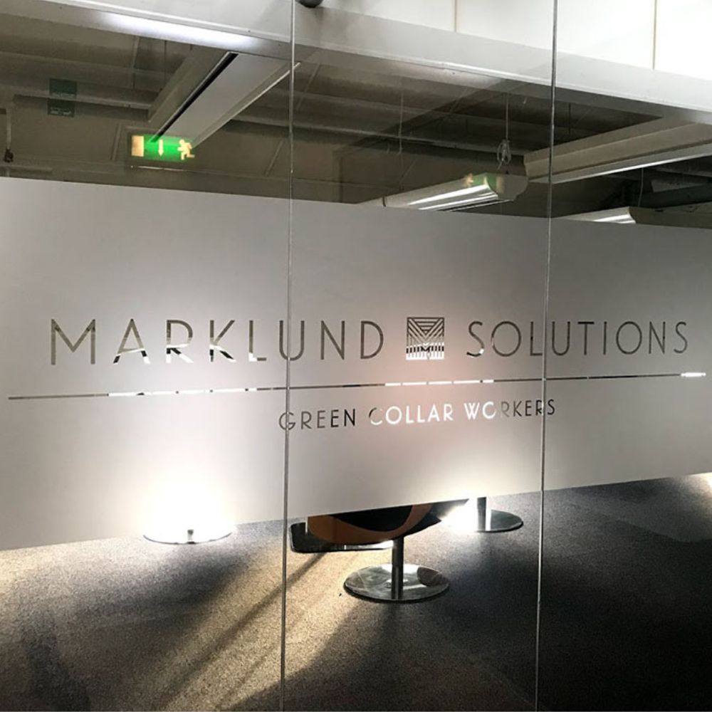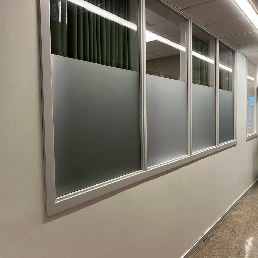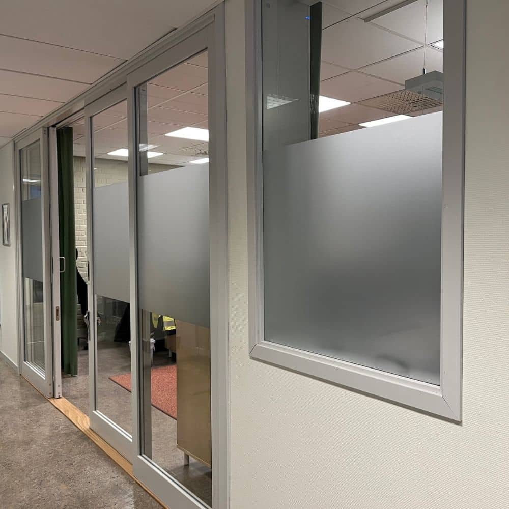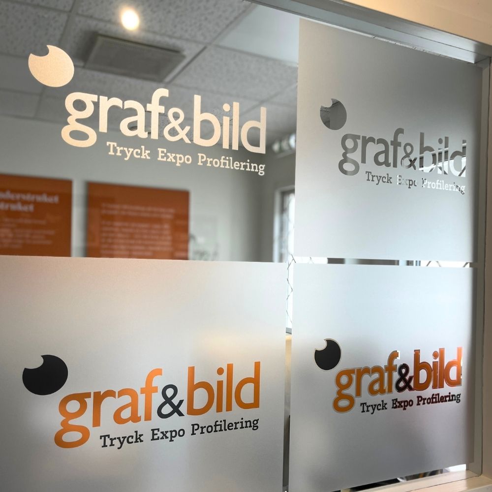 Vi erbjuder flera lösningar i både enfärgad frostad vinyl och i 4-färgsprint på frostad vinyl vilket blir väldigt effektfullt. Folieringen kan vara heltäckande, frostad och ljusgenomsläpplig eller anpassas med mönster, logotyper eller text och ger ett stilrent och professionellt uttryck.